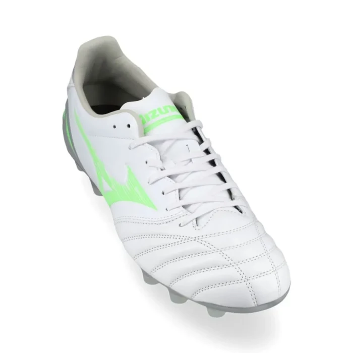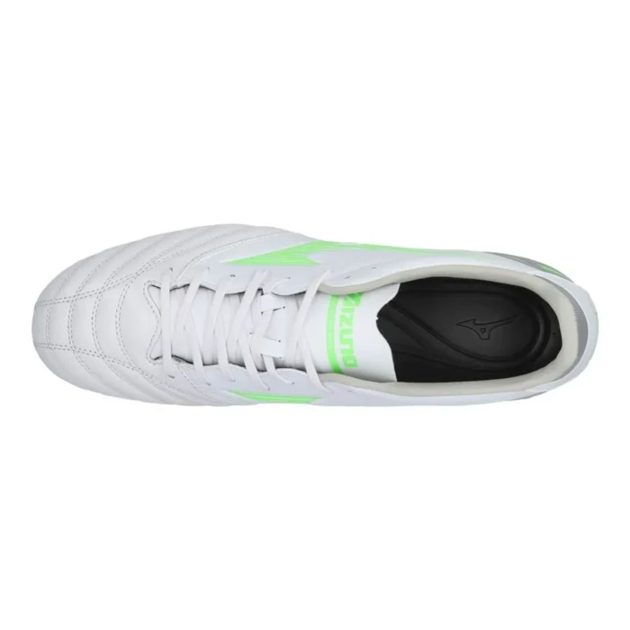 - Mizuno Morelia Neo 4 Pro FG/AG Frontier – White/Neon Green/Cool Gray