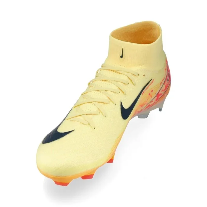 The boot is used by French superstar Kylian Mbappe Designed for those who demand greatness from themselves, this is the most responsive Mercurial ever made with a 3/4-length Air Zoom unit incorporated into the sole to the exact specifications of championship athletes The Gripknit, AtomKnit and Flyknit combine to form the thinnest Mercurial upper to date, bringing you closer to the ball and lessening break-in time Advanced outsole with a innovative stud system, featuring wave-like traction pattern combined with chevron-shaped studs for exceptional grip during acceleration and quick direction changes The Dynamic Fit collar wraps your ankle in soft, stretchy fabric for a secure feel With a classic adaptive lacing system This is a boot with FG studs, intended for use on natural grass pitches. Note: Nike states that the color of the outsole may fade with use.