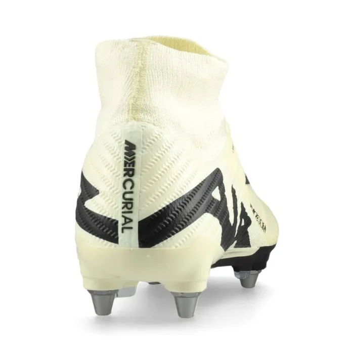 The boot is used by French superstar Kylian Mbappe The Mercurial Air Zoom brings a new kind of drive and speed into the wonderful universe of football For the first time in history, Nike has developed a 3/4-length Zoom Air unit placed in the sole that provides an extremely efficient and responsive underfoot performance that rockets you towards the finish line Upper consisting of revolutionary Vaporposite+, which combines adhesive mesh with a premium material, providing a unique fit and optimal ball control Internal speed cage made of a thin but strong material that holds the foot against the sole without adding extra weight, and at the same time ensures a secure lockdown Reinforced Dynamic Fit Collar and soft Flyknit surround the ankle, providing optimal support and stability for exposed areas Furthermore, the upper part is coated with Nike All Conditions Control, for optimal grip on the ball in all weather conditions The screw studs on this boot can be changed This is a boot with SG studs for soft surfaces ie. wet grass pitches Weight: 195 grams Note: Please be aware that there are no extra studs and boot bag included with Player Edition boots from Nike