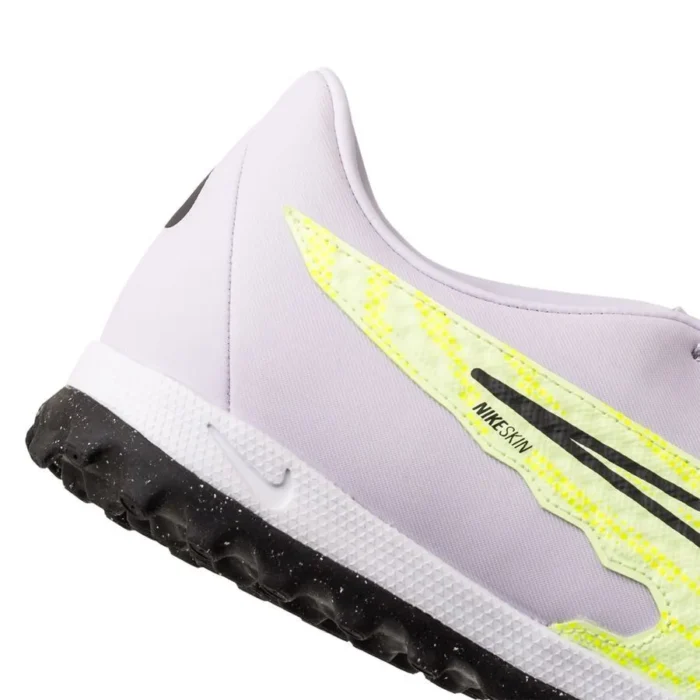 This product is made with at least 20% recycled content by weight Soft, comfortable upper with NikeSkin technology incorporated, helping to create excellent fit and optimal ball control in all weather conditions Asymmetrical construction at collar and heel for increased comfort, and the soft elements of the exposed area, help to reduce irritation completely without compromising stability and structure With a customizable lacing system, for the best fit This is a shoe with TF outsole that makes it suitable for use on artificial surfaces, such as plastics and dirt runways.