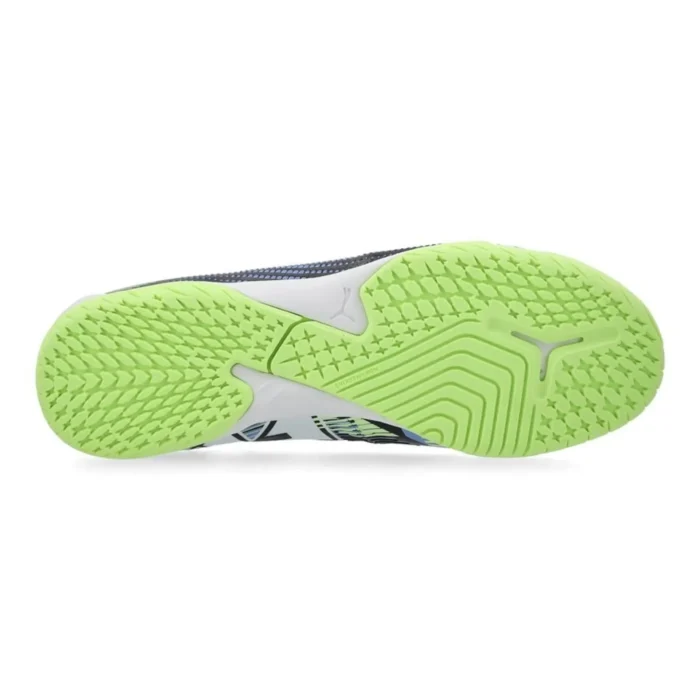 FUTURE 7 is designed for the most dynamic game makers on the planet and is used, among others, by star player Jack Grealish An elastic and redesigned FuzionFit upper with eye-catching PWRTAPE technology at the midfoot, resulting in a good fit, optimal locking and increased stability Upholstery made up of at least 20% recycled material, which is a further step towards a greener future EVA midsole for increased comfort, providing optimal shock absorption and protecting feet via the soft material This is a shoe with a “non-marking” outsole, which makes it suitable for use on smooth, flat indoor courts, made of wood or synthetic material.