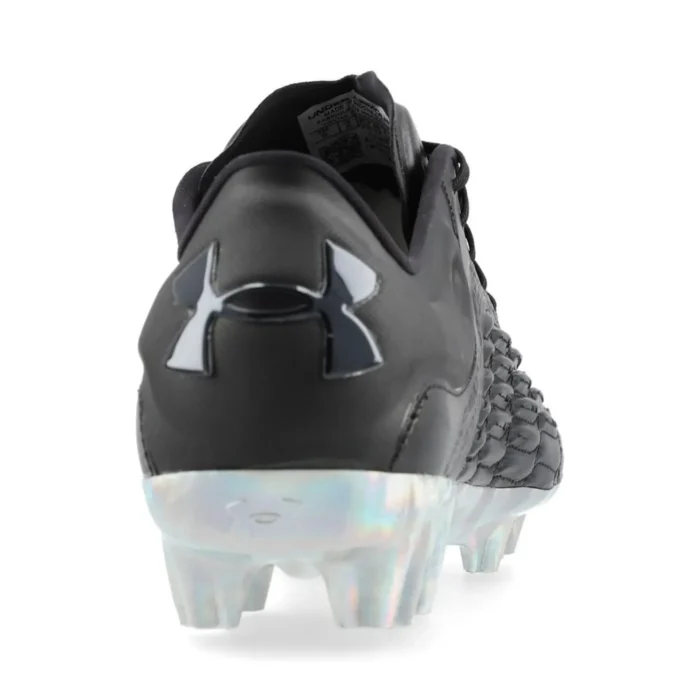 UA Clone upper provides a truly customized fit, no matter your foot size An internal layer of flexible, auxetic material molds around the foot for a precise, glove-like fit & feel 3D printed Micro-Fin Haptic print for additional touch & control 3D-molded heel for a super-comfortable, lockdown fit Asymmetrical tongue allows for additional space on the medial side for control, passing & shooting Lightweight soleplate enhances the foot’s natural ability to accelerate, dart & flex where needed Enhanced stud shape mitigates pressure & provides optimum traction This is an FG boot, designed to be used on natural firm grass. Please note: Under Armour informs that the chrome accent on the sole plate can wear off during use.